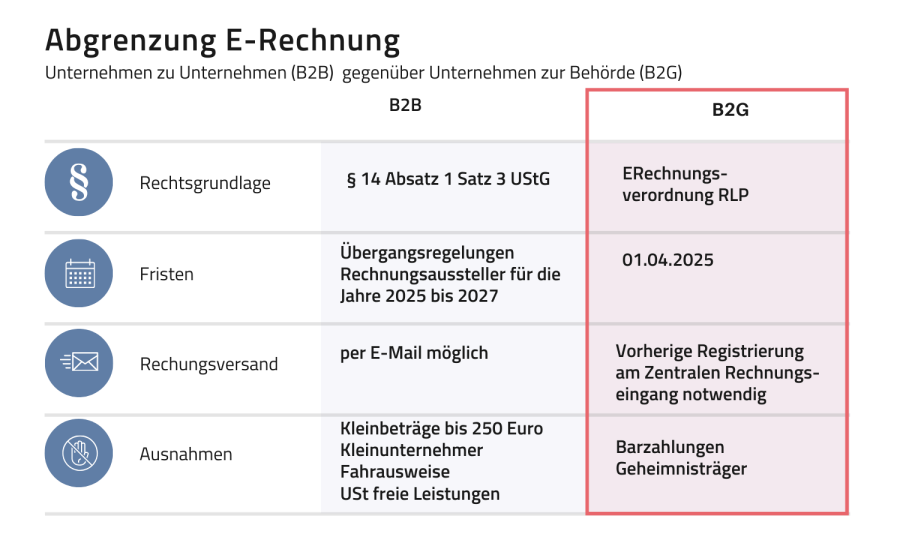 Gemäß §3 der ERechVORP (§3 Abs. 2 Satz 1) sind Sie ab dem 1. April 2025 dazu verpflichtet, E-Rechnungen auszustellen und zu übermitteln.